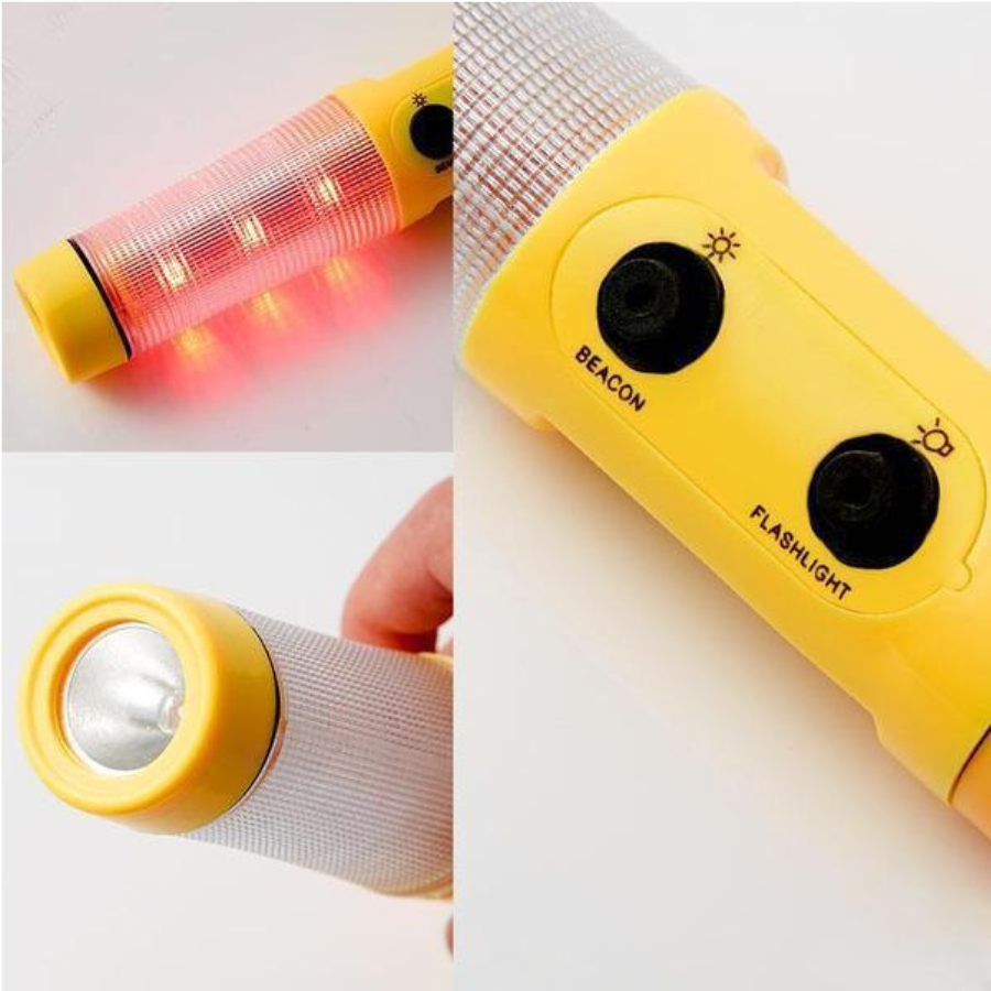 Lanterna para Fuga de Emergência de LED 5 em 1 Sinalização Vermelha, Faca para Cinto de Segurança, Martelo e Imã