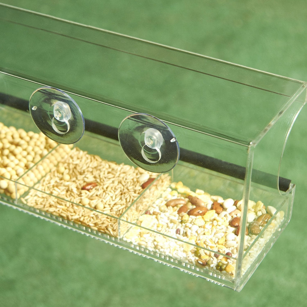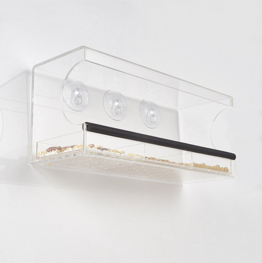 Dê as boas vindas aos pássaros em sua casa com este Alimentador de Pássaros Para Janelas e se aproxime de seus pássaros favoritos! Ele é feito de acrílico durável transparente e possui uma bandeja removível, providenciando uma experiência clara de observação e é fácil de repor a comida.