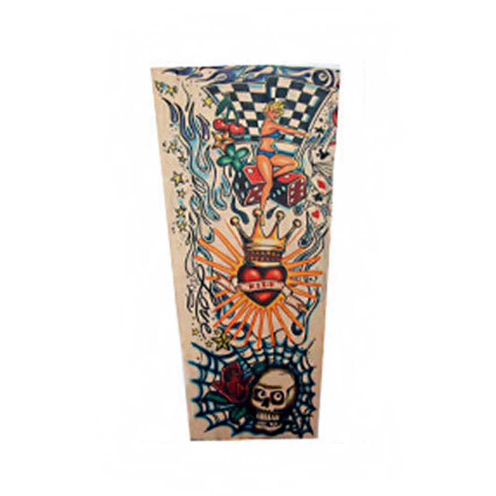 Ideal para crianças de 3 a 8 anos, a manga é confeccionada em **poliéster translúcido** (como se fosse uma meia calça) e possui dimensões e elasticidade ideais para moldar-se no braço da criança e dar um aspecto natural de tatuagem.