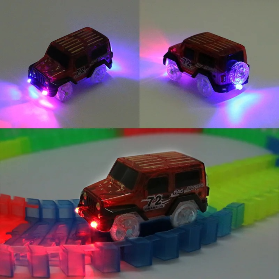 - Conjunto de corrida com carro LED, flexível e que gira em quase qualquer direção