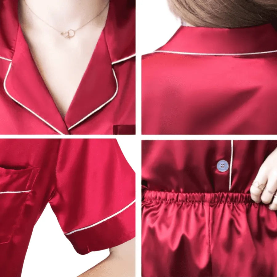 Experimente o luxo e a sofisticação dos nossos Conjuntos de Pijamas Femininos de Seda, perfeitos para transformar suas noites e dias quentes em momentos de puro conforto e elegância. Imagine-se relaxando em casa com estilo, seja lendo um livro no sofá, assistindo seu filme favorito ou desfrutando de um café da manhã tranquilo em uma manhã quente. Nossos pijamas são projetados para oferecer o máximo de conforto sem perder o charme, tornando-se a escolha ideal para qualquer ocasião de descanso. Invista em noites de sono tranquilas e revigorantes, envolta em suavidade e frescor.
