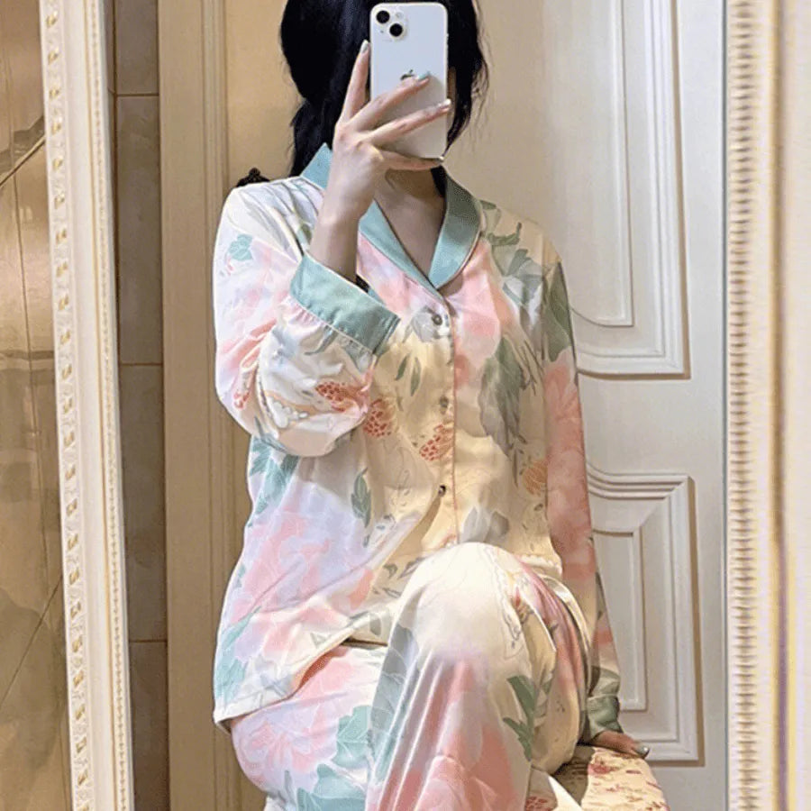 O produto Pijama Feminino Serenade Conjunto Calça e Camisa Longa Em Seda Gelo Premium | Toque De Seda Confortável é um produto exclusivo Magazineal, vendido apenas em nossas lojas autorizadas. Caso você veja este produto sendo comercializado em sites não autorizados, desconfie.