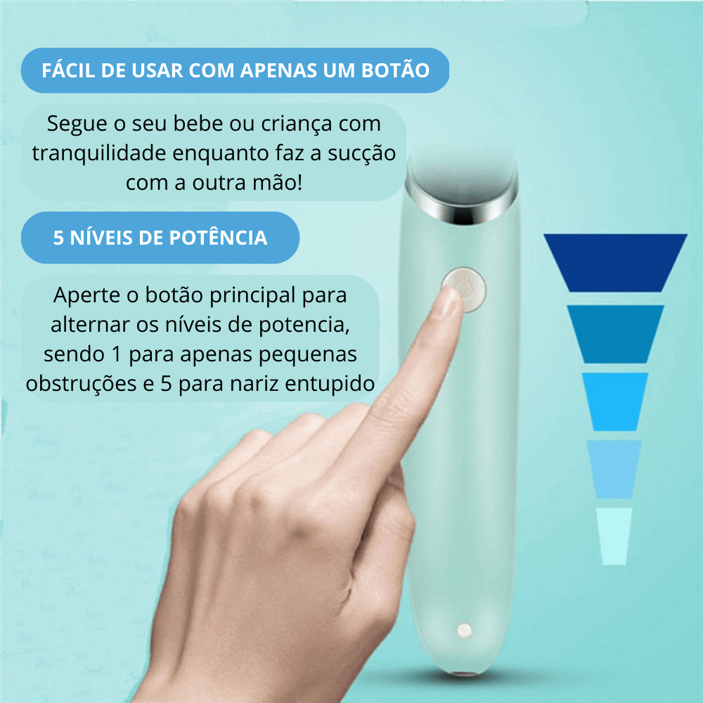 Com motor tecnológico e desenvolvido especialmente para ser usado em bebês e crianças, possui a potência necessária e exata para resolver o problema com conforto e segurança para seu bebê. Também possui motor silencioso para não incomodar e assustar a criança.