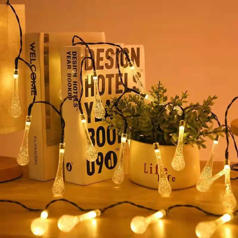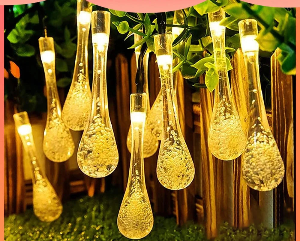 Cordão de Luz em Forma de Gota de Água - 10m, 40 LEDs, Branco Quente e Colorido