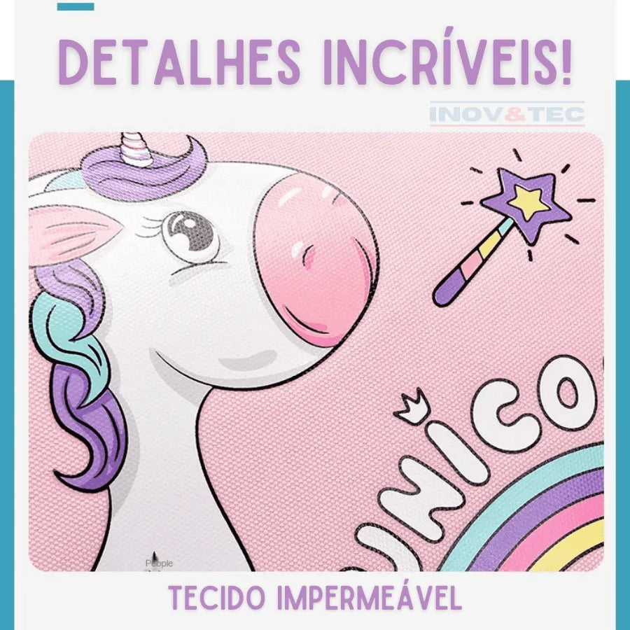 Mochila Infantil Desenhos Criativos com estampas de unicórnios e dinossauros