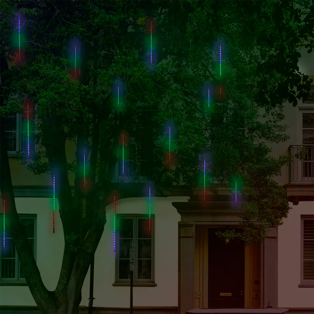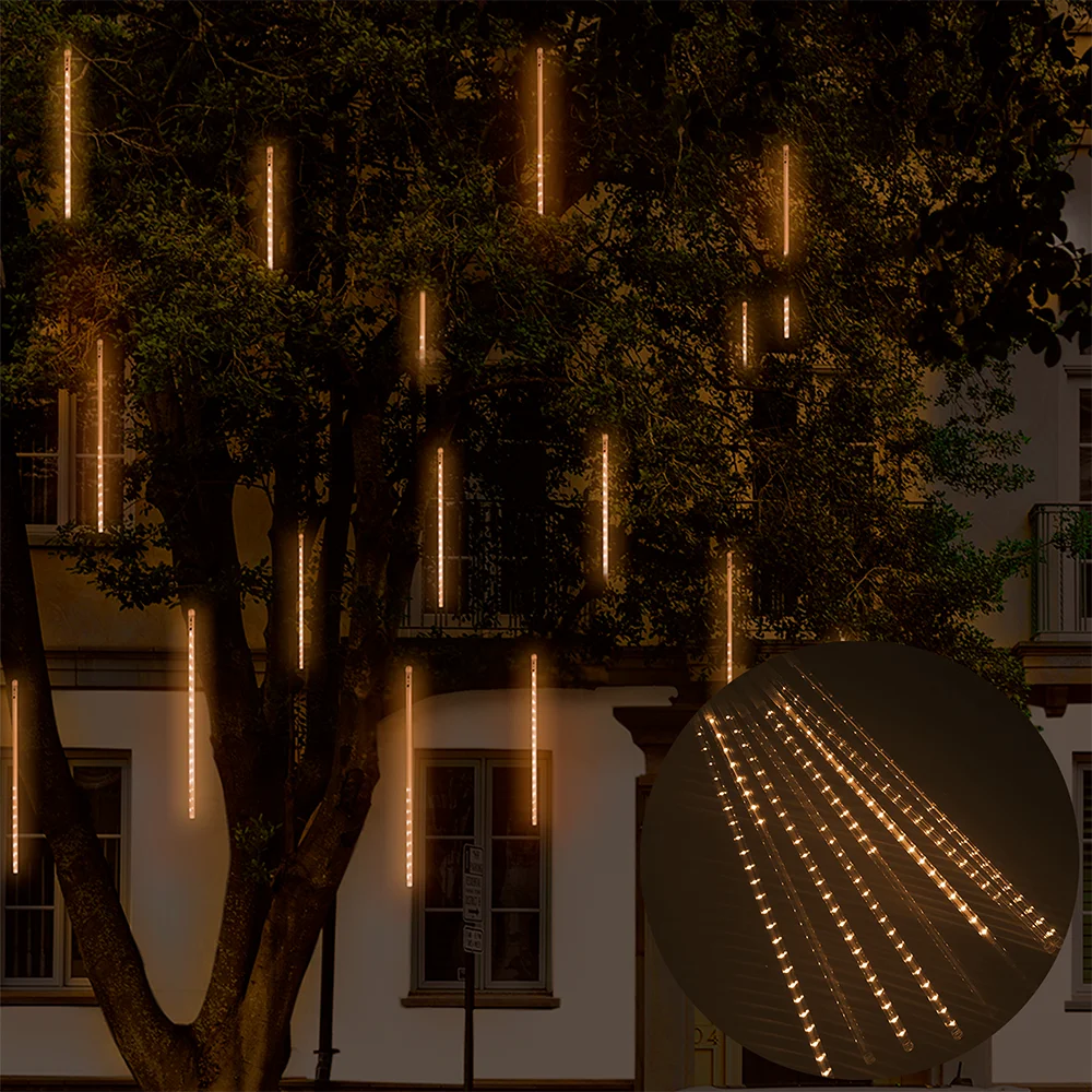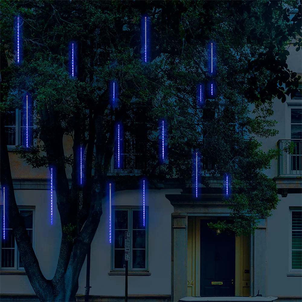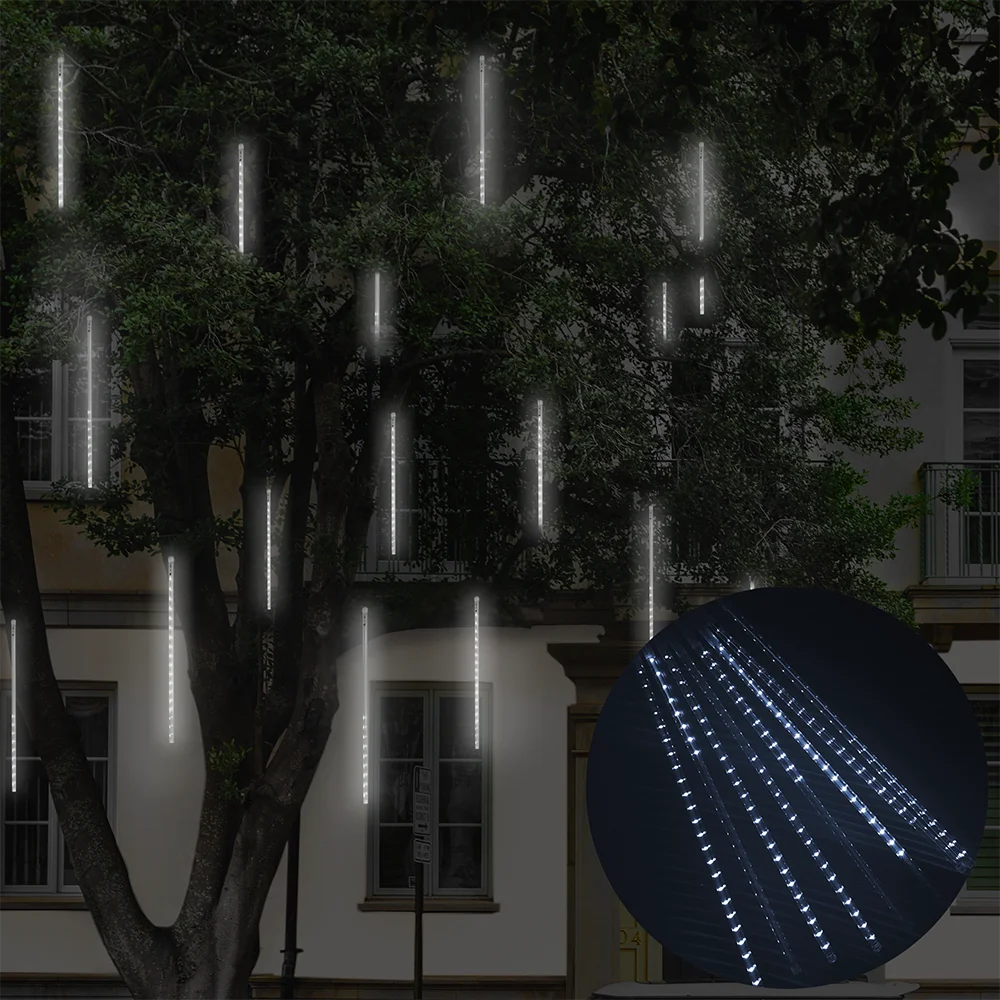 Cascata de Luzes LED Meteoros de Natal - Efeito Chuva de Meteoros com 8 Tubos Conectáveis