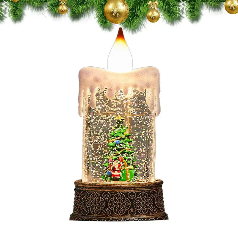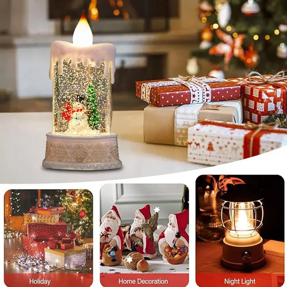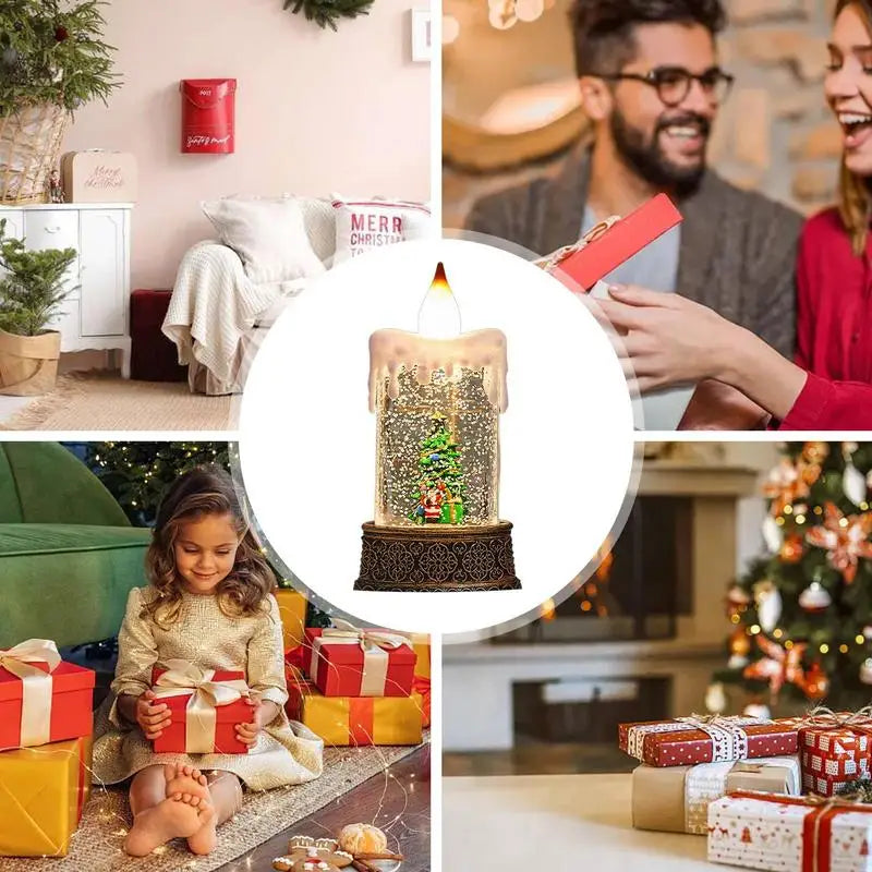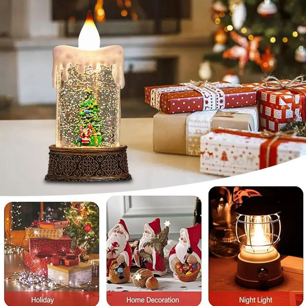 Feita de resina de alta qualidade e ABS, a lanterna é projetada para resistir ao desgaste. Combina luzes realistas de velas com água, glitter e um efeito vintage de vela LED sem chama, criando um deslumbrante item decorativo para qualquer ambiente.