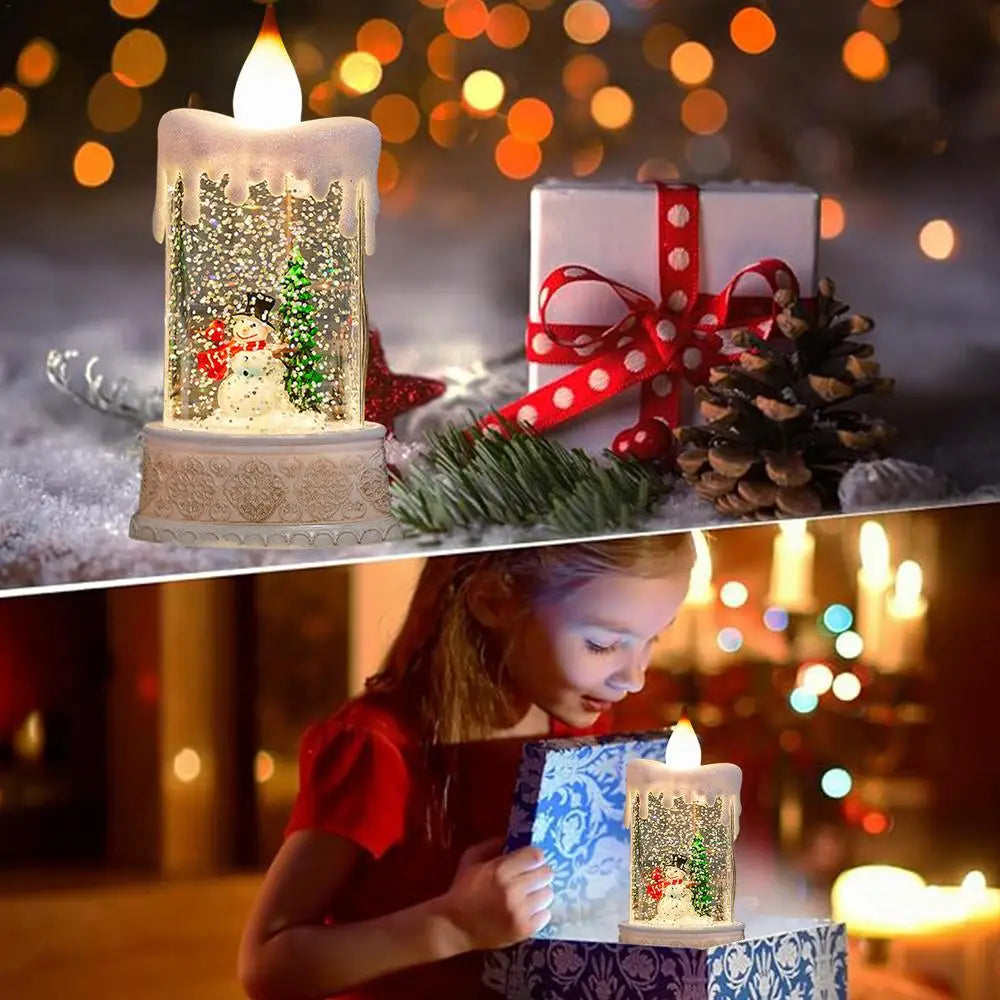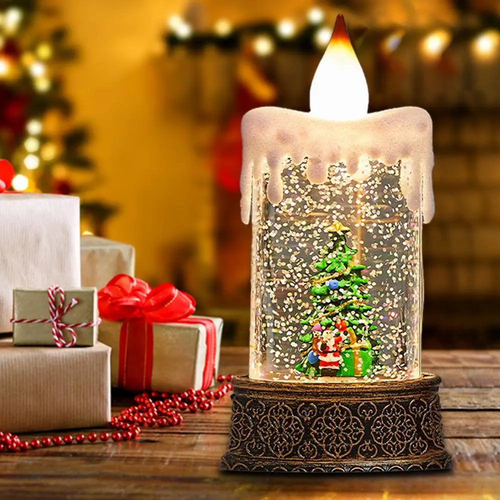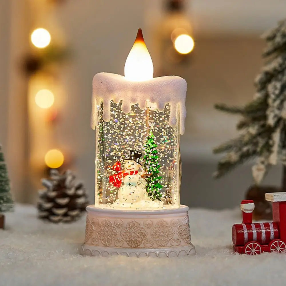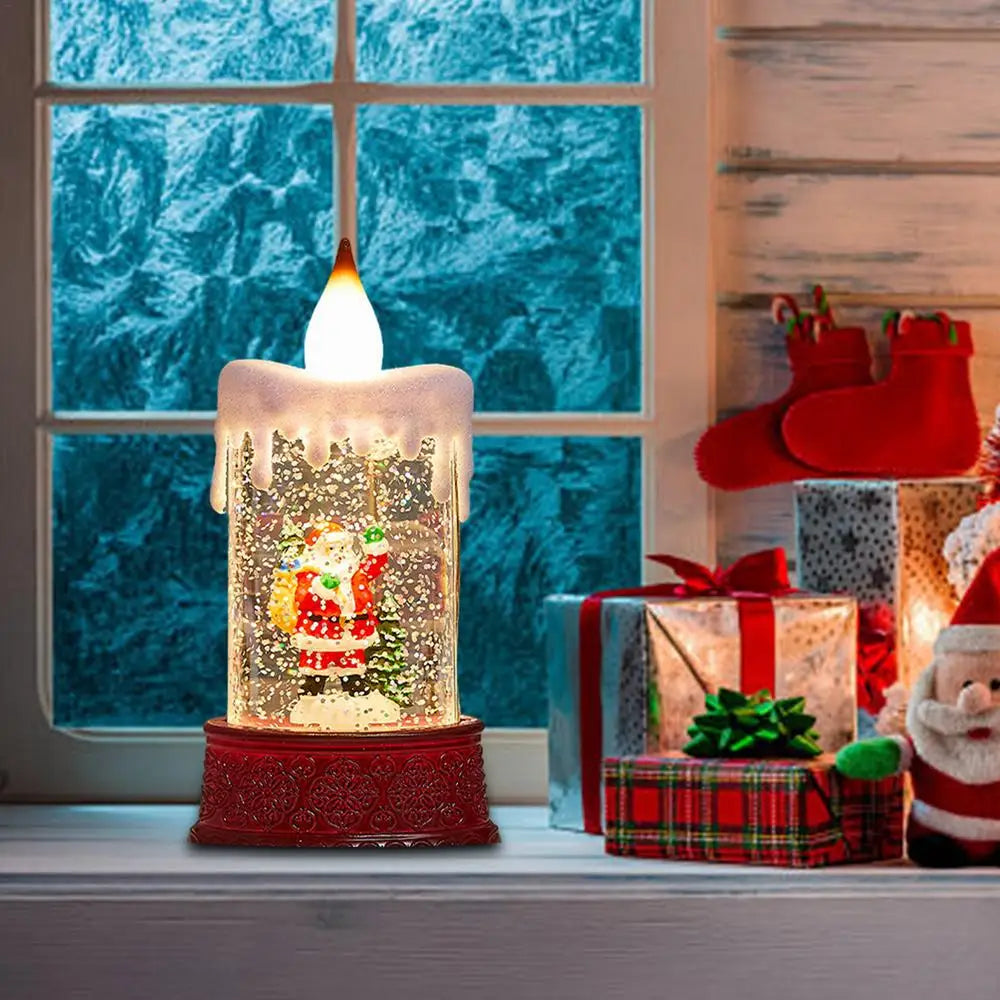 Feita de resina de alta qualidade e ABS, a lanterna é projetada para resistir ao desgaste. Combina luzes realistas de velas com água, glitter e um efeito vintage de vela LED sem chama, criando um deslumbrante item decorativo para qualquer ambiente.