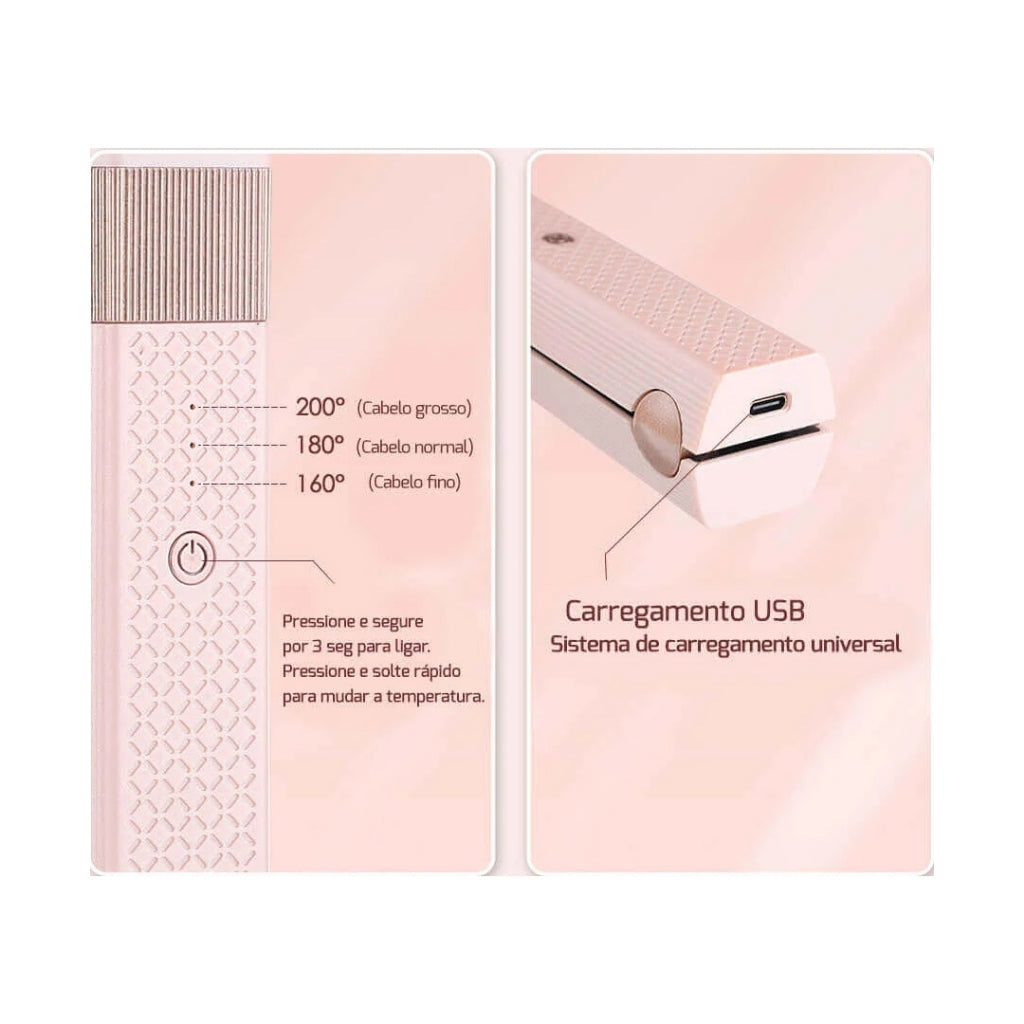 Chapinha Alisadora de Cabelo Portátil de Cerâmica Sem Fio e Recarregável PortAlise