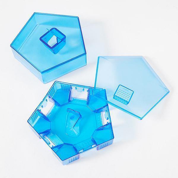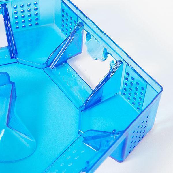 - Abra a tampa transparente e coloque a isca nos 5 bolsos ou no centro do painel de captura