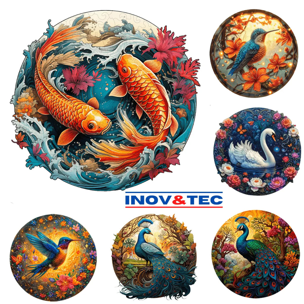Quebra-Cabeça de Madeira Inova WOOD PUZZLE - Asas e Escamas | Diversão com Diversos Benefícios