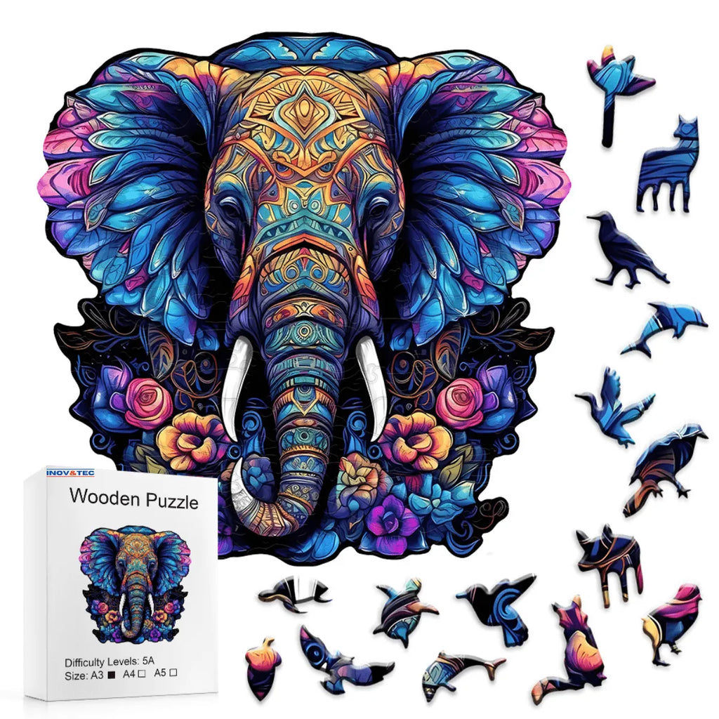 Quebra-Cabeça de Madeira Inova WOOD PUZZLE - Elefante Sereno | Diversão com Diversos Benefícios para Crianças e Idosos