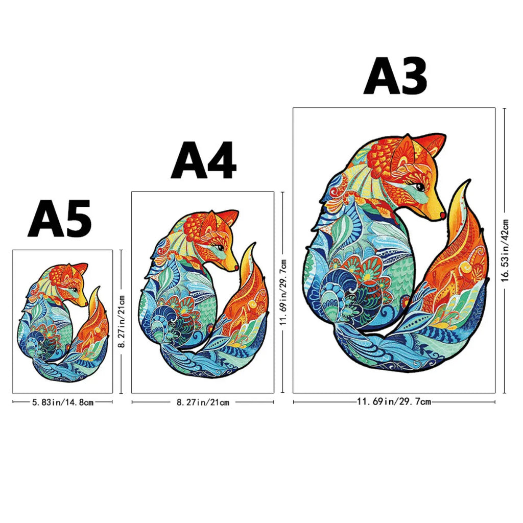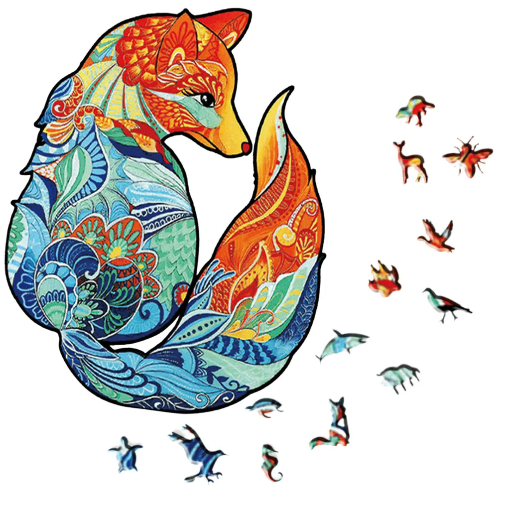Quebra-Cabeça de Madeira Inova WOOD PUZZLE - Raposa Floral | Diversão com Diversos Benefícios para Crianças e Idosos