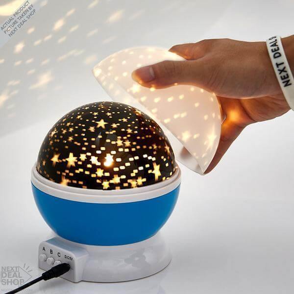 Uma luminária fascinante que projeta **estrelas** em todo o teto e nas paredes! Observe-os dançar ao redor e fazer seus filhos terem uma adorável noite, e ótimos sonhos!