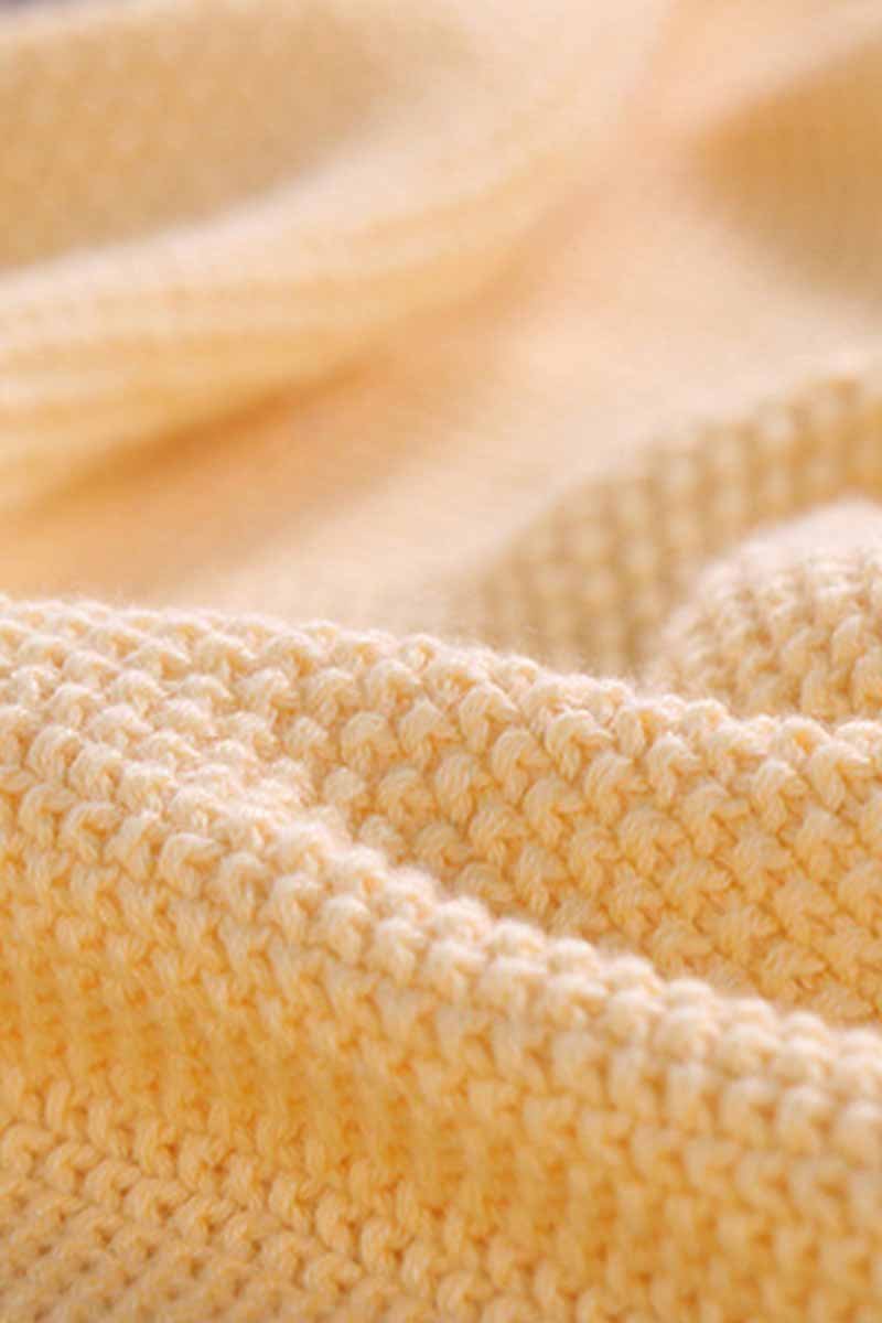 Cobertor feito de algodão, com cores vibrantes e pompons na barra, apresentando contraste.