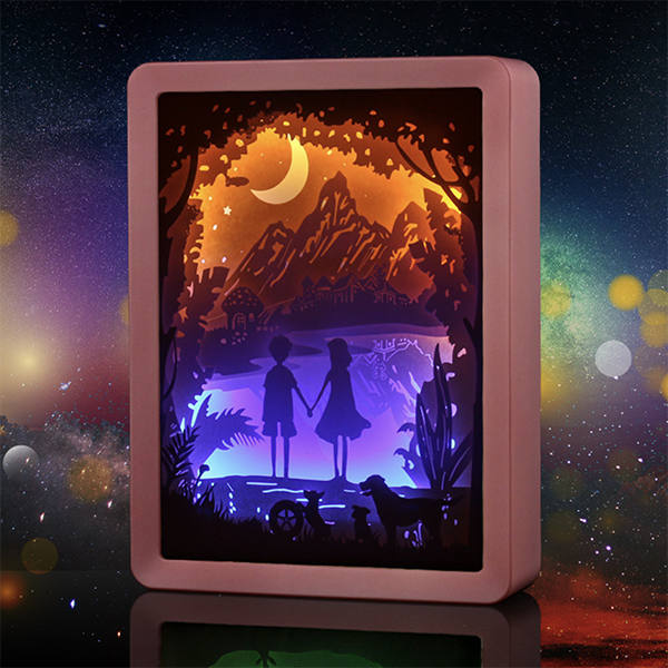 • Multi camadas de contornos sobrepostos para formar uma luz suave, sonhadora. Cada camada tem um design de silhueta única. Será uma poderosa apreciação artística.