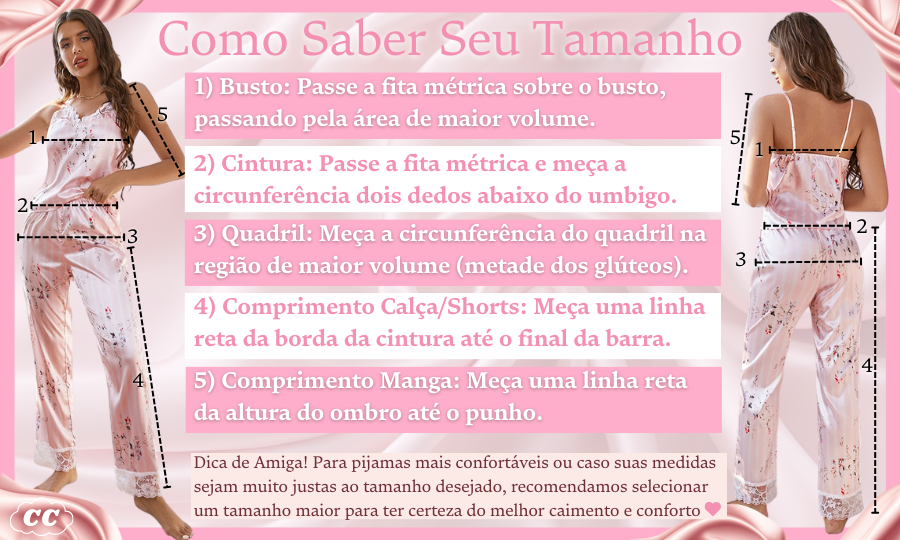 - Conteúdo do pacote: 1x Conjunto de Pijama Feminino Lace Dreams, com Shorts e Cropped.