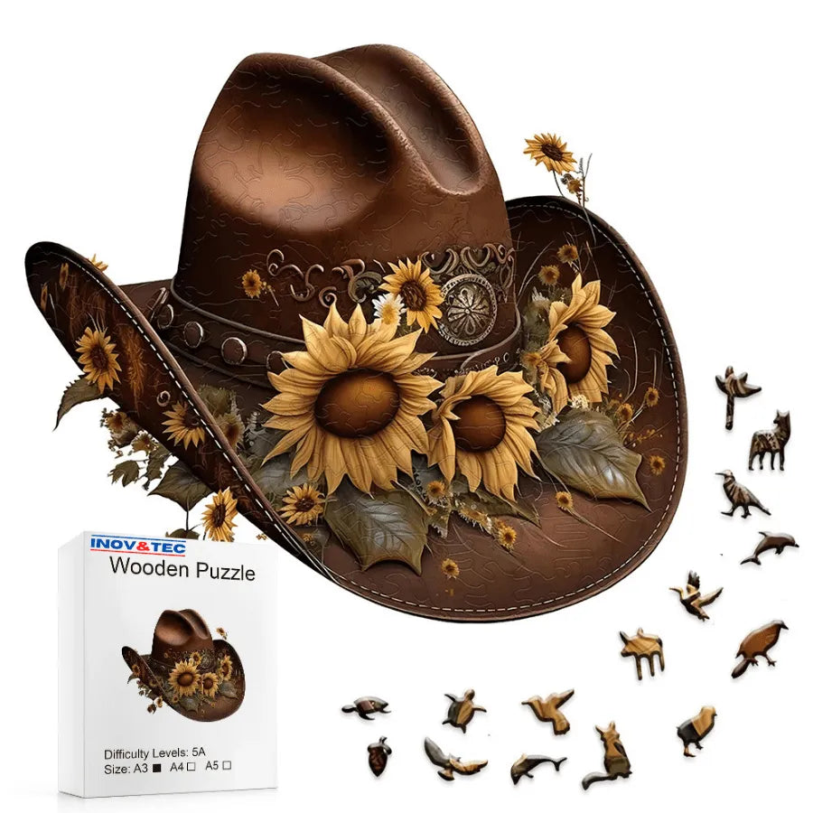 Quebra-Cabeça De Madeira Inova WOOD PUZZLE - Chapéu Com Girassóis | Diversão Com Diversos Benefícios